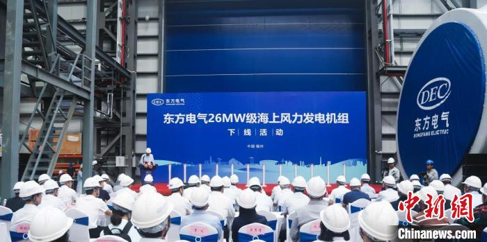 [中国新闻网]全球最大26兆瓦级海上风力发电机组下线