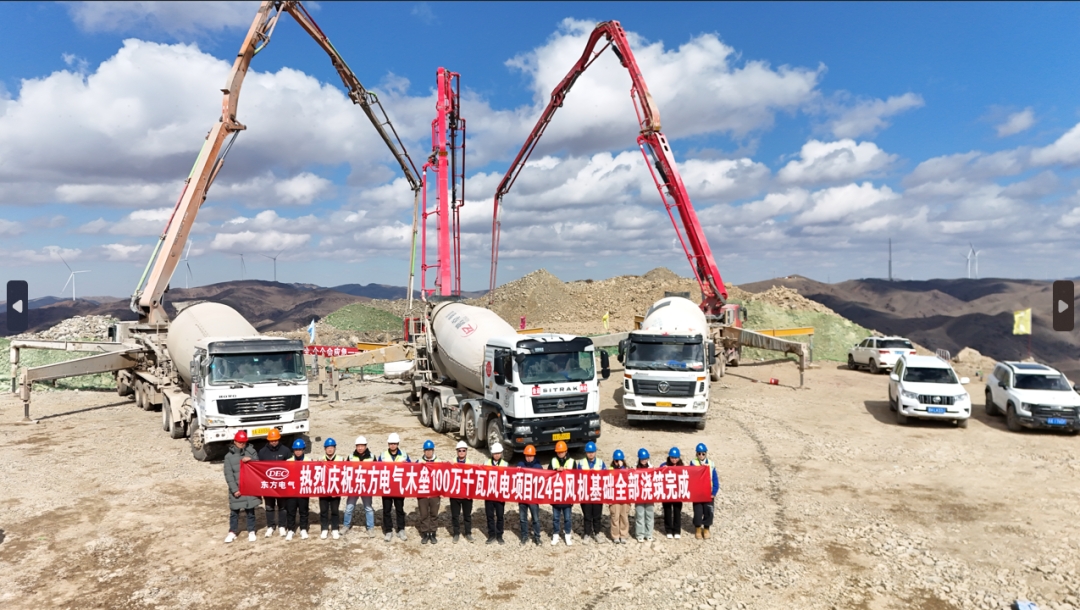 为保障项目顺利交付,9月26日,东方风电新疆木垒基地月产第100台风机轮毂顺利下线,创造了东方风电生产基地单月最大产出纪录。截至9月29日,该项目已完成40台风机吊装工作,完成率达32.2%;完成项目集电线路基础开挖工作共计788基,完成率达94%;220千伏汇集站也全面进入设备安装调试阶段。
