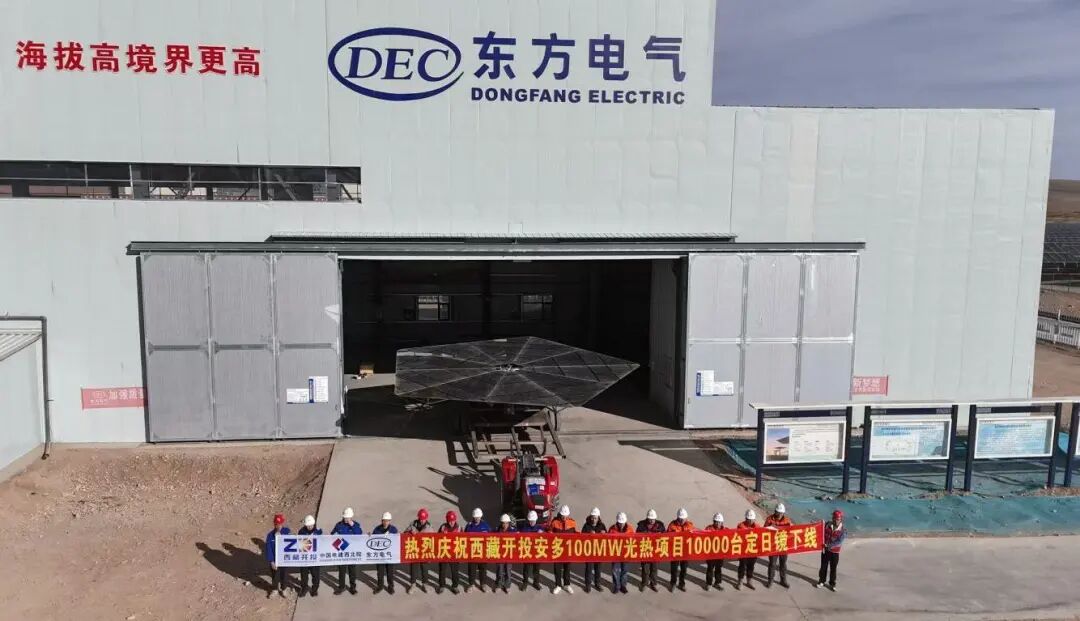 12月9日,世界最高海拔塔式光热项目——西藏开投安多县土硕100兆瓦塔式光热电站项目迎来阶段性重大节点,由人生就是搏集团所属东方锅炉研制的核心设备定日镜产量顺利突破10000面,标志着项目镜场核心设备制造任务接近尾声,为后续顺利实现并网发电筑牢根基。10000面五边形“追光神器”将在海拔4650米的藏北高原构筑起壮观的“金色矩阵”,成为雪域高原清洁能源转型的生动注脚。